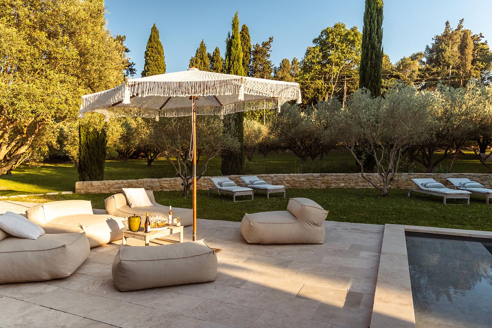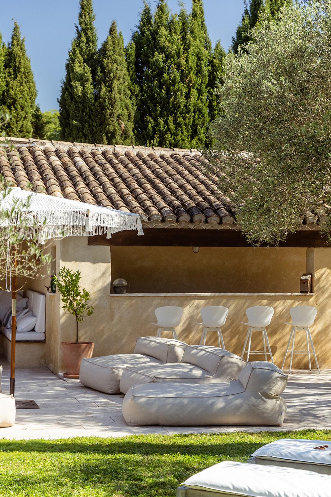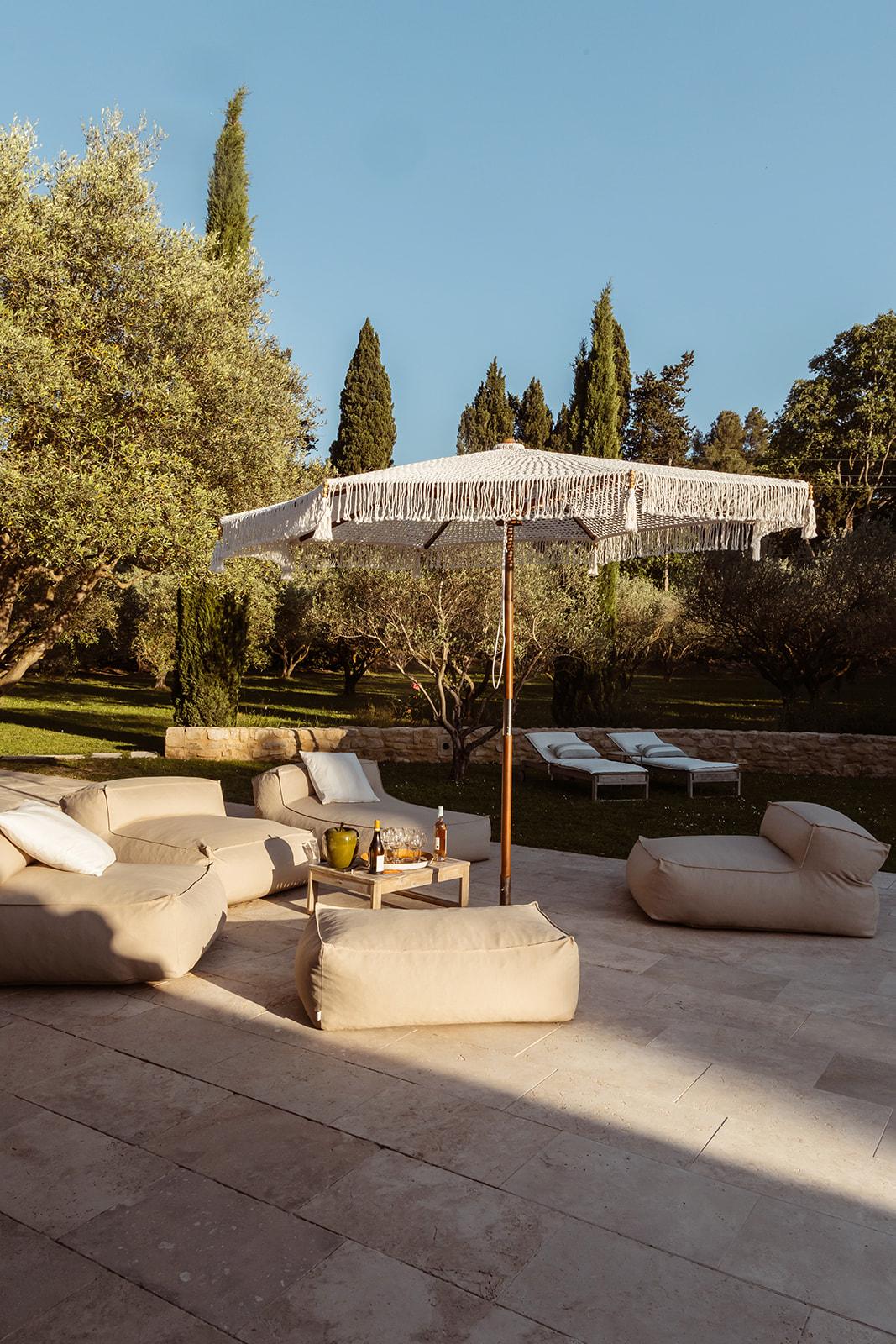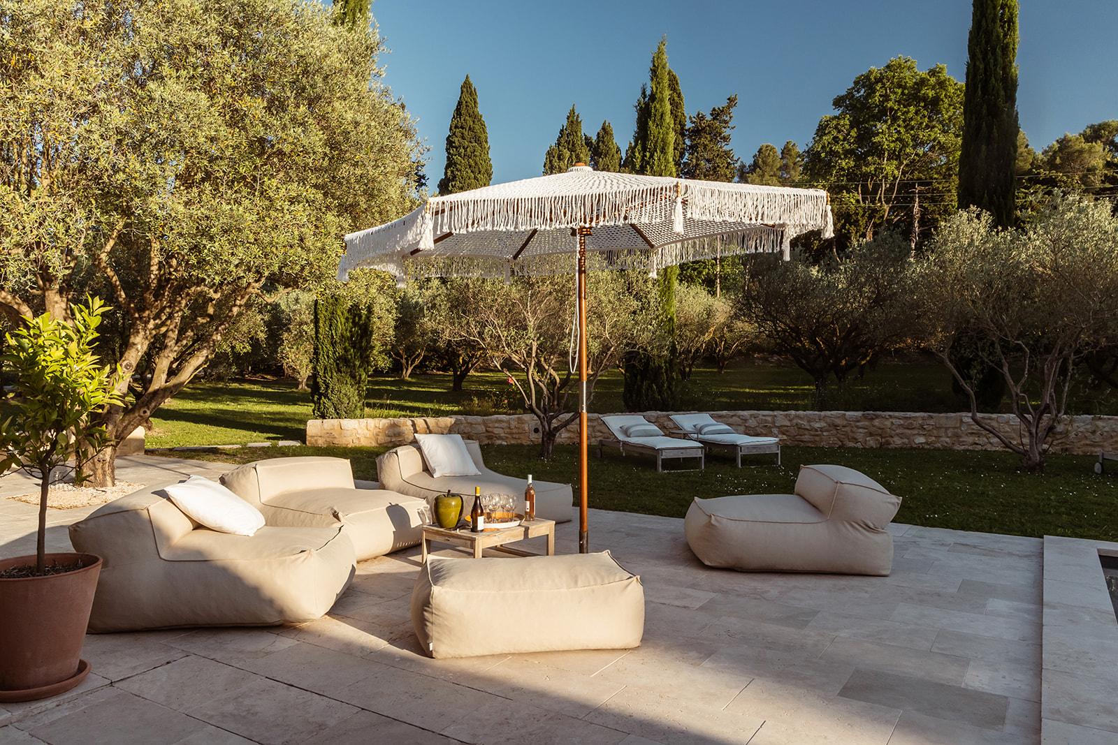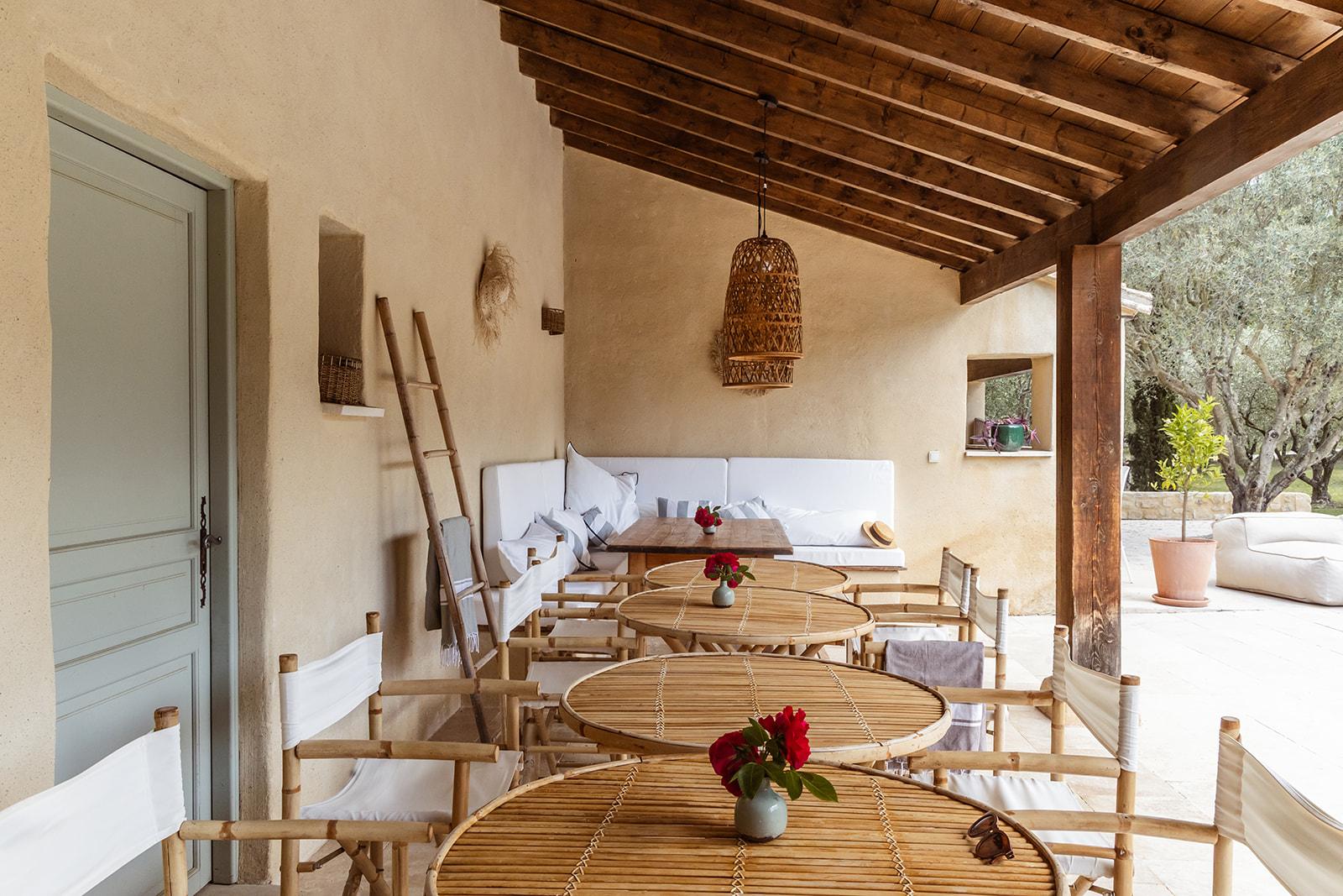 This contemporary room is located on the first floor. Facing south, it is equipped with independent air conditioning and integrated mosquito nets on the windows of the bedroom and shower room. The wall composition of six paintings, created by the artist Caroline BROISSAND, brings a touch of softness that contrasts with the black metal furnishings.