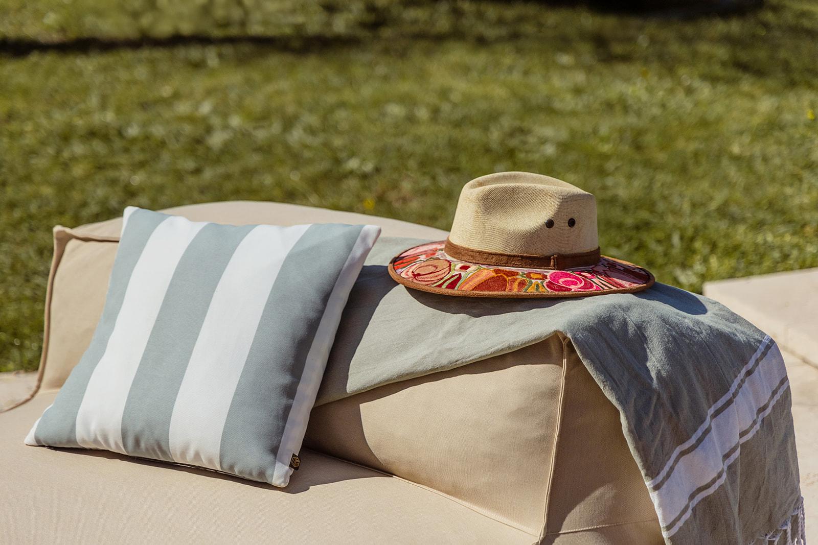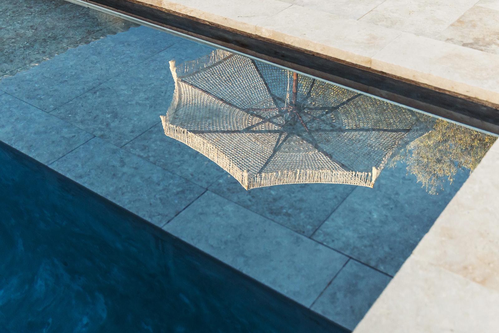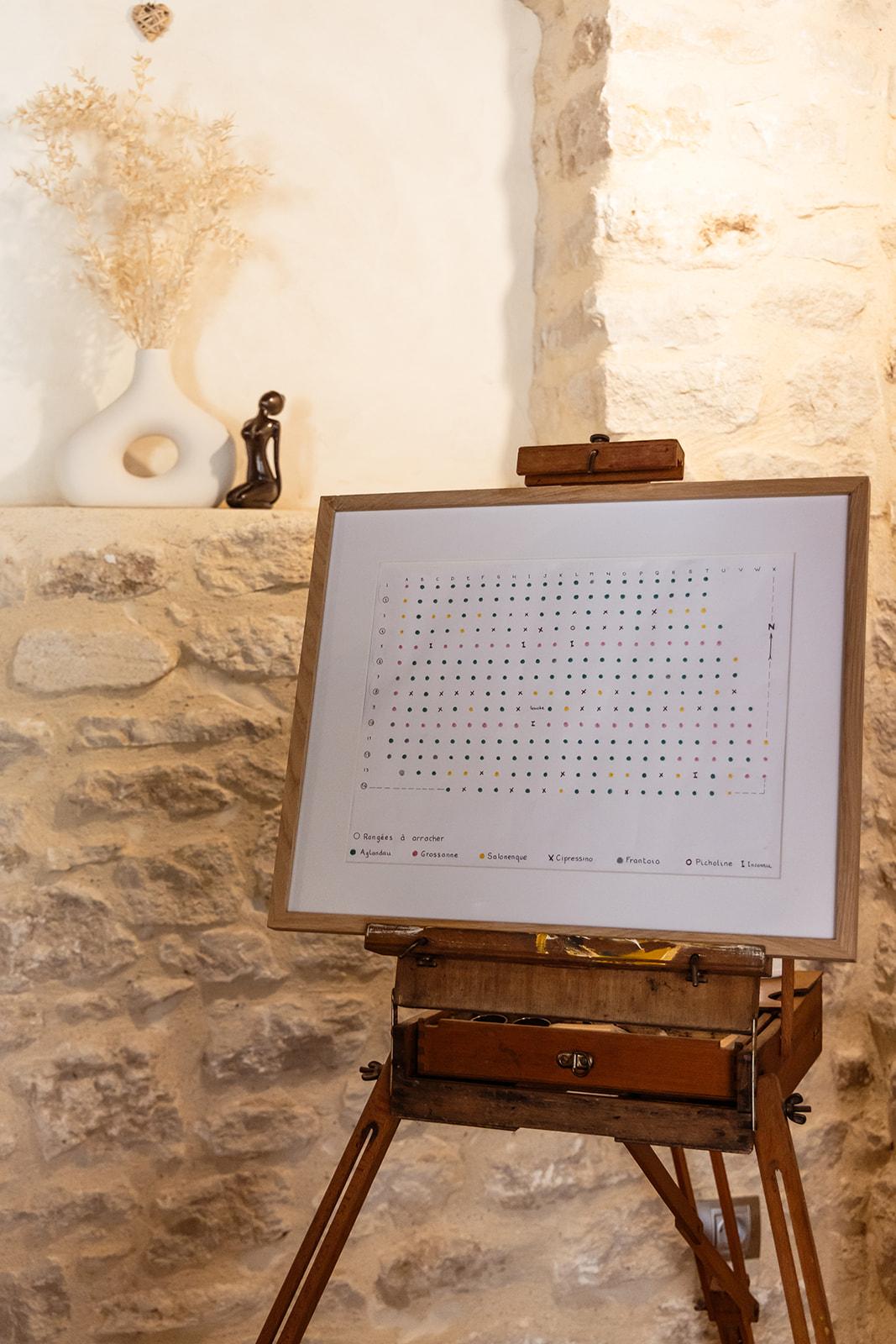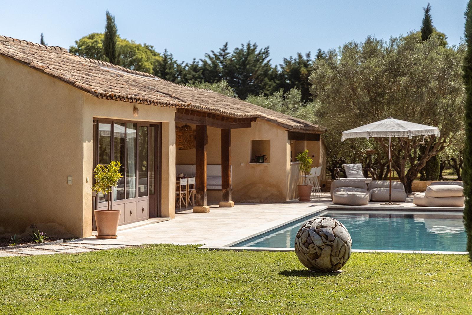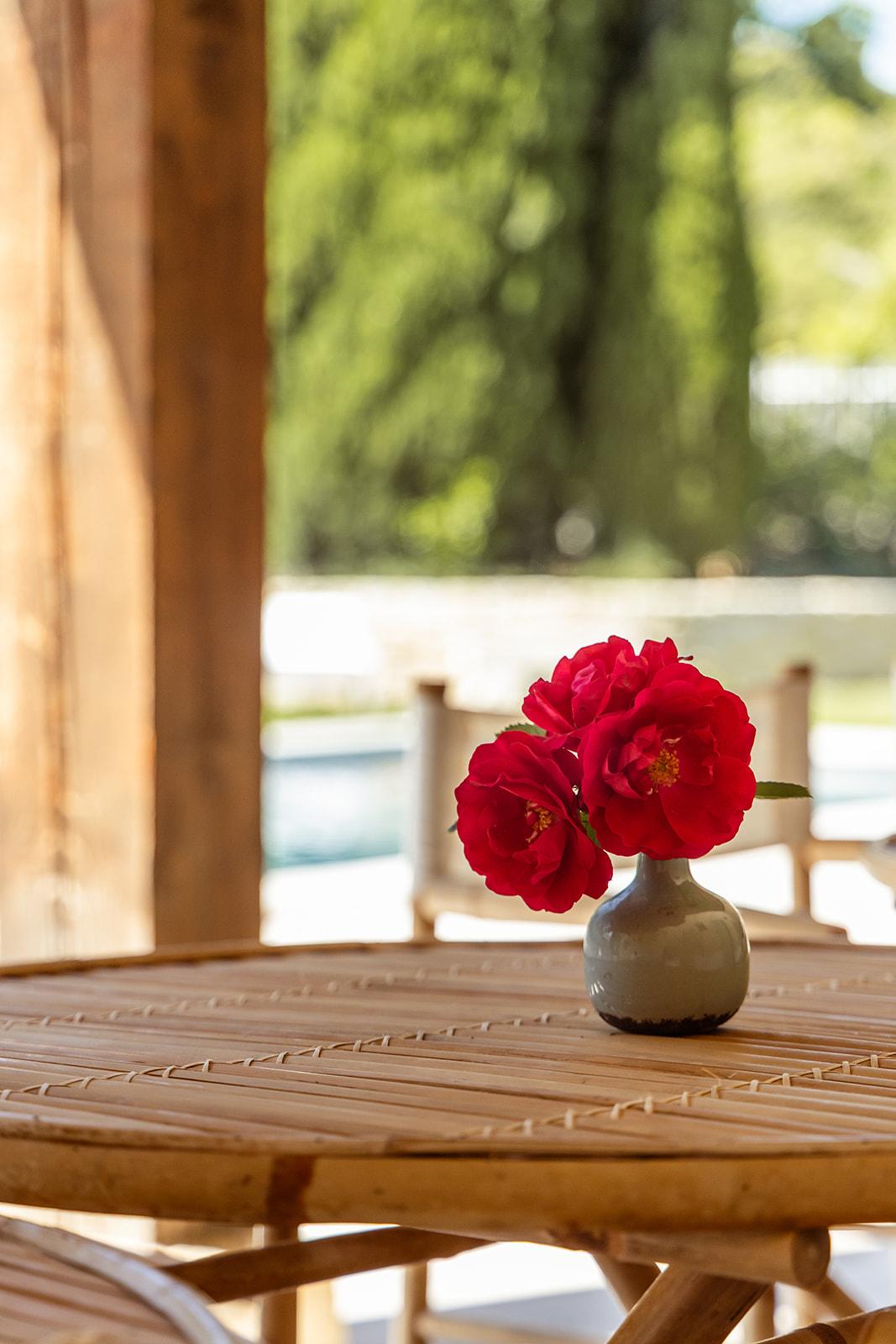 This contemporary room is located on the first floor. Facing south, it is equipped with independent air conditioning and integrated mosquito nets on the windows of the bedroom and shower room. The wall composition of six paintings, created by the artist Caroline BROISSAND, brings a touch of softness that contrasts with the black metal furnishings.